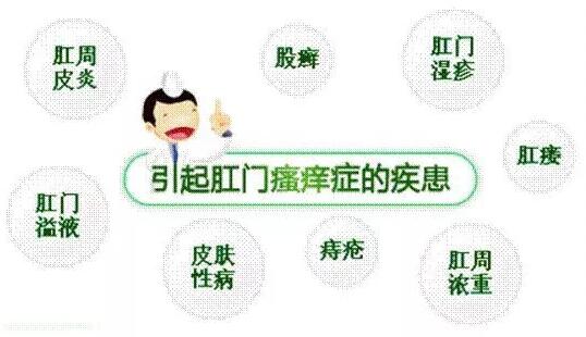 肛门直肠疾病引起肛门瘙痒包括:肛裂、肛瘘、痔疮、肛乳头炎、肛窦炎、直肠脱垂、肛门失禁等。